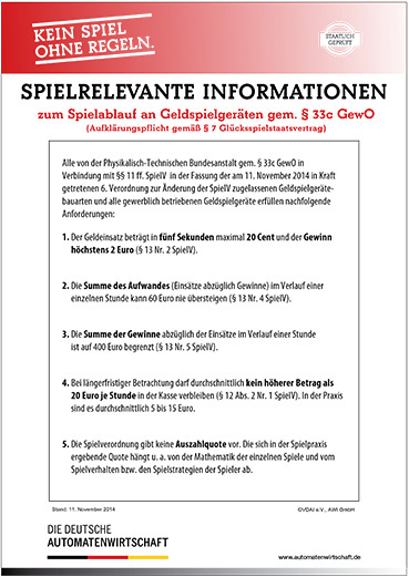 Hier erhalten Sie die Informationen zum Spielablauf an Geldspielgeräten.